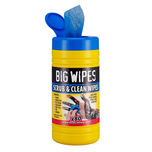 Dual sided wipes designed for scrubbing and cleaning. Cleans paint, adhesive, oil & more from hands, tools & surfaces. DOCUMENTS: MSDS
