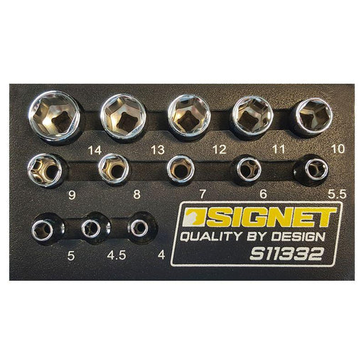 Signet 1/4" Drive. 6 Point. Standard Depth. 4-14mm Set. 13 Piece Socket Set in EVA Foam S11332
