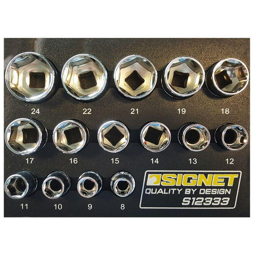 Signet 1/2" Drive 6 Point Standard Sockets 10-32mm 16 Piece Set in EVA Foam S13336