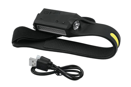 A USB rechargeable, waterproof head torch with LED spotlight together with a COB LED strip light, featuring an infrared auto-sensor function allowi...