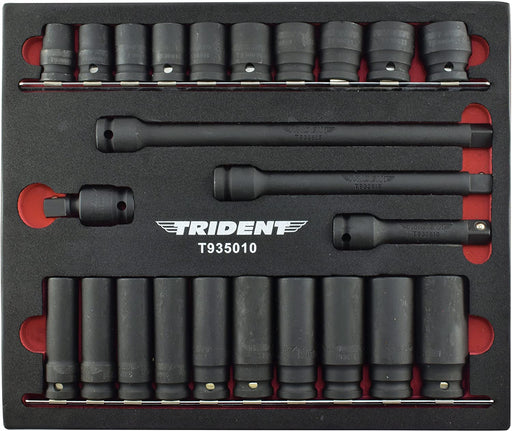 View full detailsTrident 1/2" Drive 6 Point Short +Deep Impact Sockets 13-24mm 24 Piece Set in Foam Tray T935010