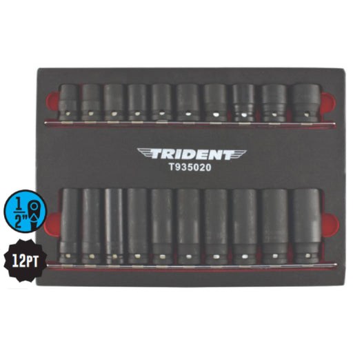 Trident 1/2" Drive 12 Point Short +Deep Impact Sockets 13-24mm 20 Piece Set in Foam T935020