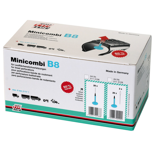 Combined patch/plug tyre repair for punctures to the tread of both radial and cross-ply tyres up to 6mm - Repair units vulcanise in the tyre.- The...